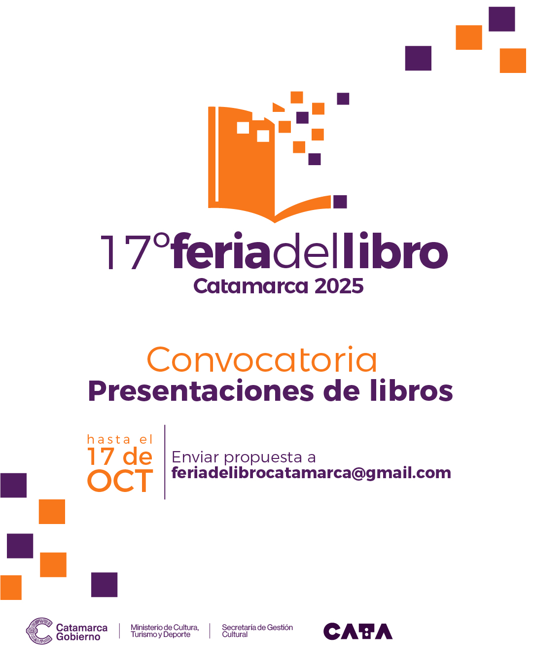 Hasta el 17 de octubre está abierta la posibilidad de presentar propuestas, a través del correo electrónico feriadelibrocatamarca@gmail.com