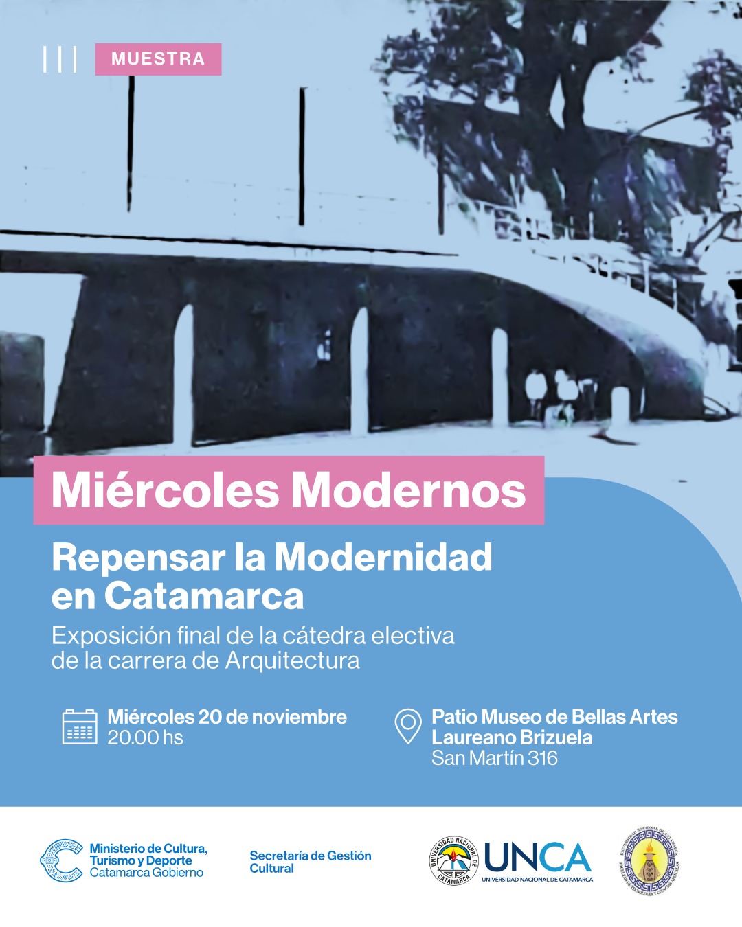 Tanto la asignatura “Repensar la Modernidadâ€, como el ciclo de charlas “Miércoles Modernos†conforman el espacio “Catamarca Modernaâ€, un ámbito de debate colectivo destinado a difundir los pensamientos y las obras de la arquitectura moderna. Este espacio está coordinado por los arquitectos Basilio Bomczuk y Laura Maubecín.