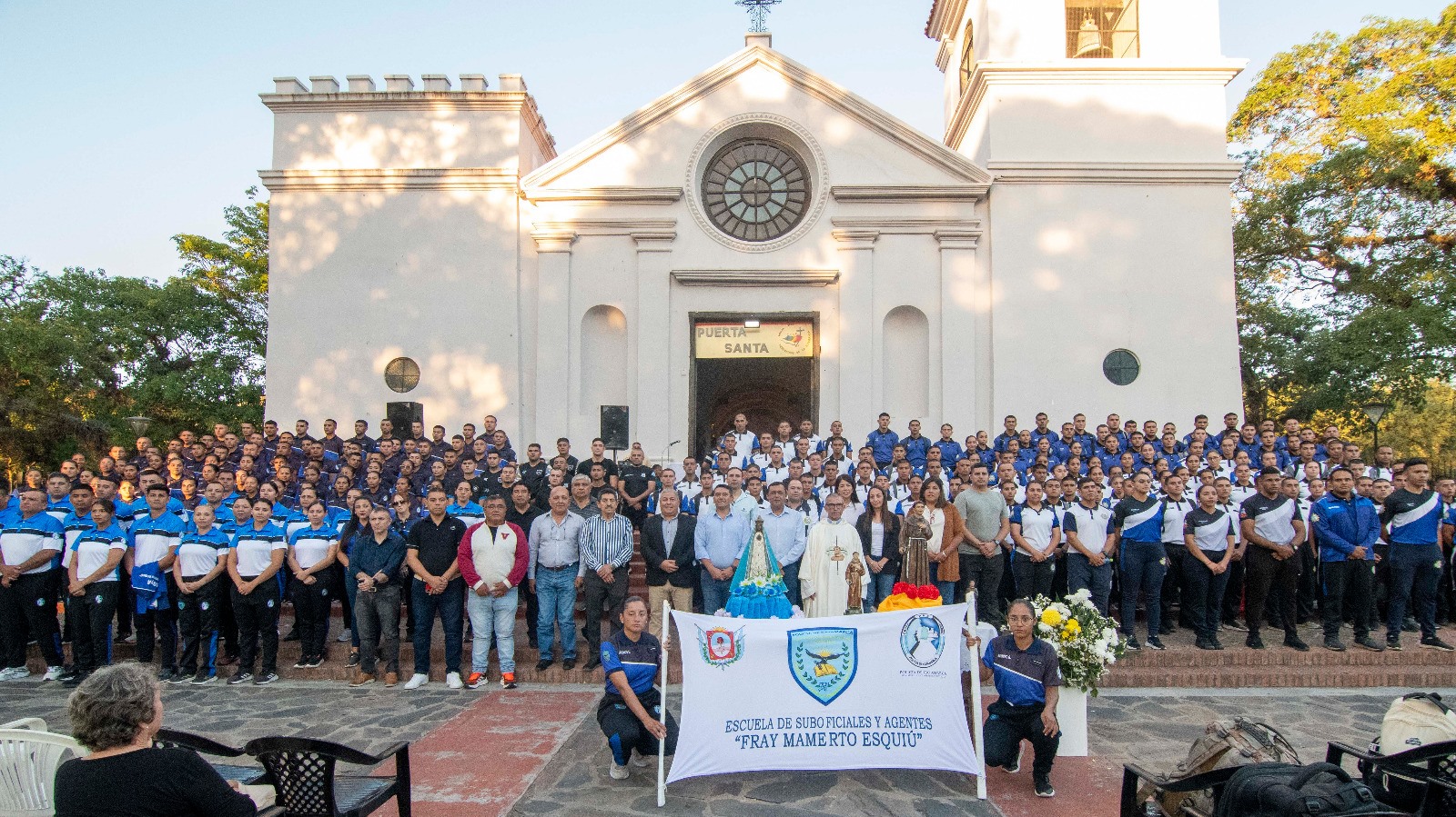 Recordamos que la semana de homenaje al patrono de la Escuela de Suboficiales y Agentes se inició el lunes con la Santa Misa, e incluyó diversas actividades como el conversatorio sobre Esquiú y su incidencia en la Policía de Catamarca, a cargo del Prof. Mario Vera; también se trabajó sobre La fe no es incompatible con el estado policial, abordándose los cuatro principios de la ley 5429 y su relación con el Libro de los Proverbios en la Biblia; además de una jornada de camaradería entre los aspirantes a agentes de segundo año y los oficiales del tercer año de la Escuela de Cadetes.