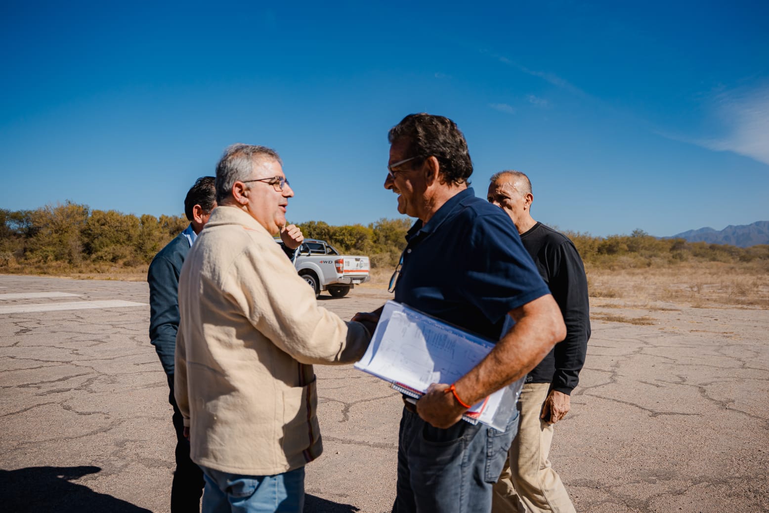 Durante la visita oficial a la localidad de Londres, en el departamento Belén, el gobernador Raúl Jalil y el intendente Roberto Rodríguez recorrieron las instalaciones del aeródromo local, donde se proyecta una obra de ampliación y puesta en valor de la pista de aterrizaje.