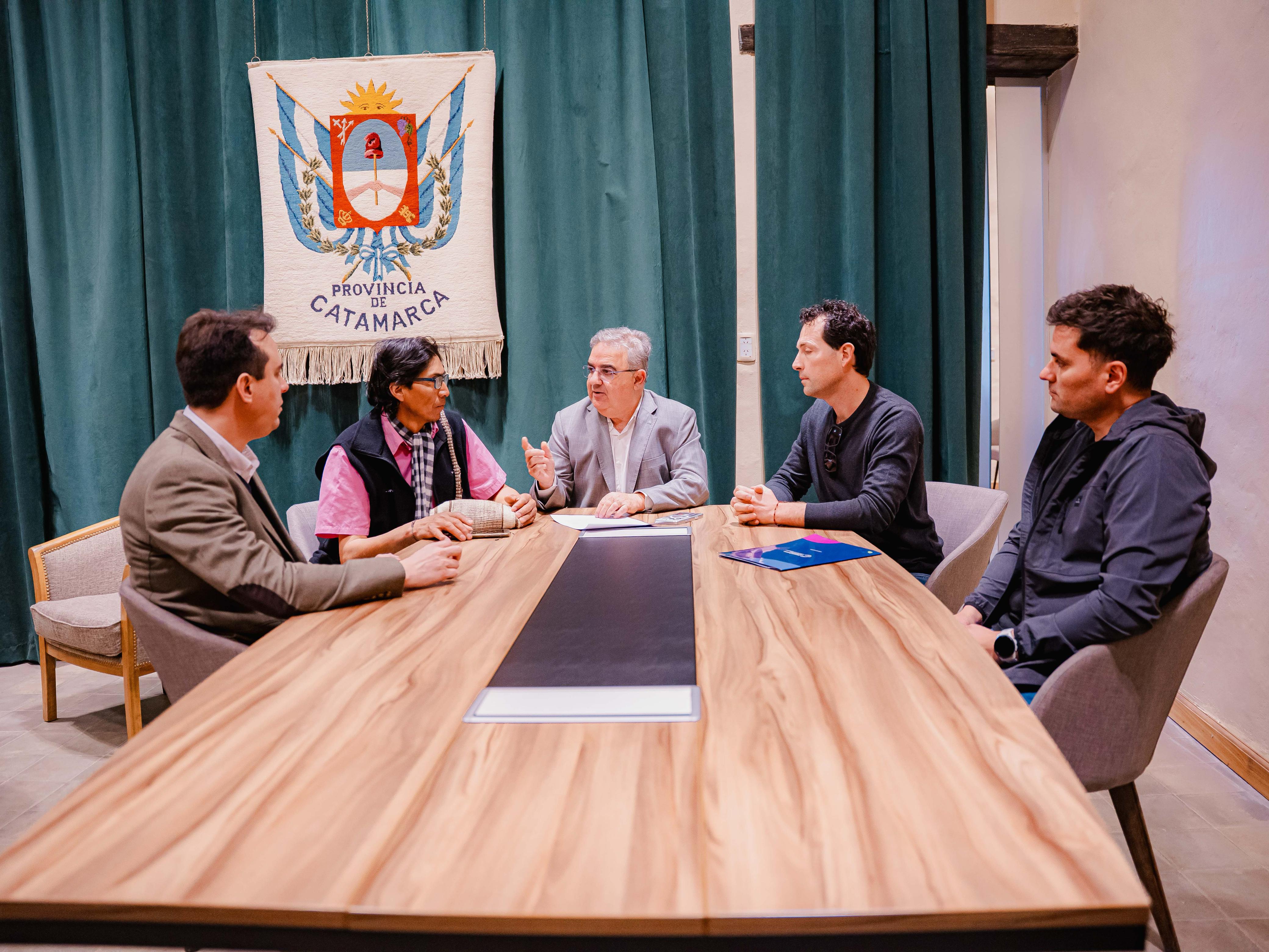 En un encuentro en Casa de Gobierno, el gobernador Raúl Jalil, junto al ministro Fernando Monguillot, y el cacique de la Comunidad de La Angostura, Bernardo Gutiérrez, recibieron al gerente zonal de Loro Piana Perú, Eliphas Coeli. La reunión sirvió para consolidar la articulación entre el Gobierno, las comunidades indígenas y la empresa internacional, que ya permitió exportar fibra de vicuña desde Catamarca y busca extender beneficios a nuevas comunidades.