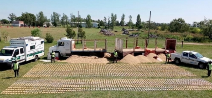 Personal de la Unidad de Reunión de Información Mendoza de Gendarmería Nacional, con el apoyo de unidades de la Fuerza de Córdoba, incautaron 2.285 kilos 762 gramos de marihuana, al interceptar y detener un camión en el paraje alejado de rutas importantes próximo a la localidad cordobesa de Gutenberg del Departamento Río Seco, cercana al límite interprovincial con Santiago del Estero.