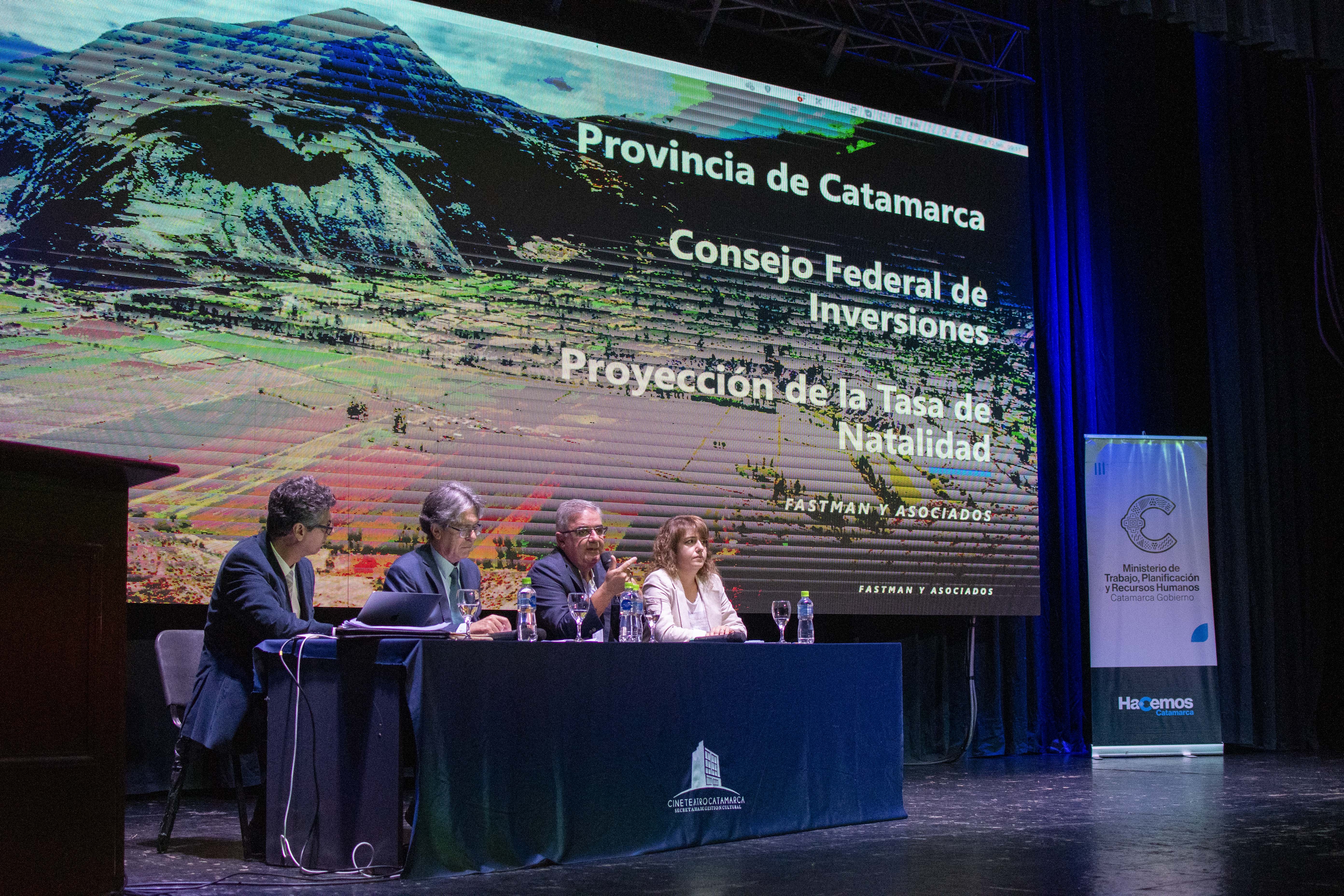 La presentación del “Estudio sobre la Tasa de Natalidad. Proyecciones a 20 años en la Provincia de Catamarca” se realizó en el Cine Teatro Catamarca y estuvo encabezada por el gobernador Raúl Jalil y la ministra de Trabajo, Planificación y Recursos Humanos, Verónica Soria. La disertación estuvo a cargo de los actuarios Bernardo Alberto Fastman y Alejandro Nava, quienes fueron los encargados de elaborar el informe.