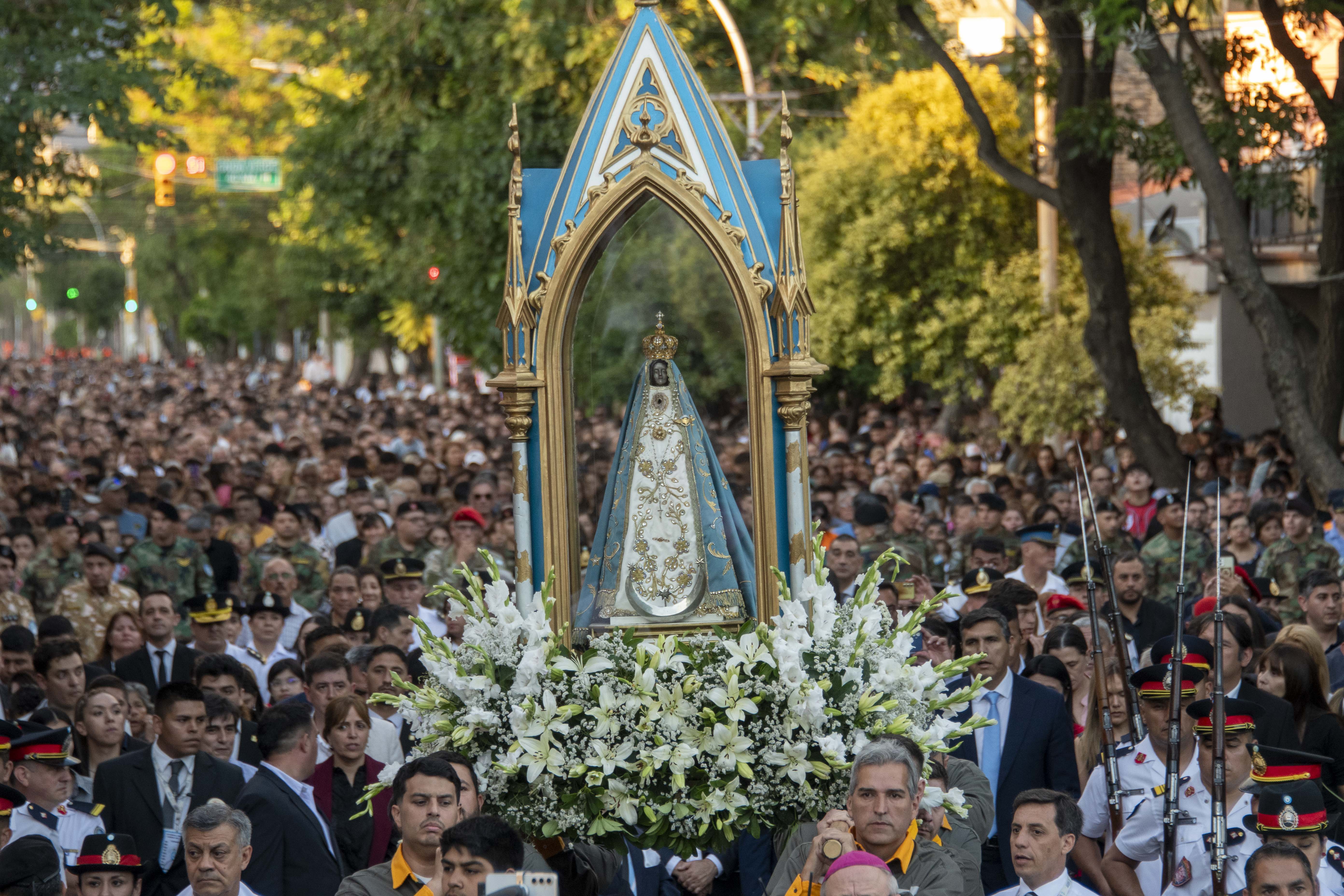 La Madre Morena fue precedida por la imagen del Beato Esquiú y detrás se ubicaron el obispo diocesano, Mons. Luis Urbanc, sacerdotes del clero catamarqueño de los cuatro decanatos: Capital, Centro, Este y Oeste, entre ellos el vicario general, padre Julio Murúa, y el rector del Santuario Catedral, padre Juan Ramón Cabrera; sacerdotes visitantes, consagrados y consagradas.