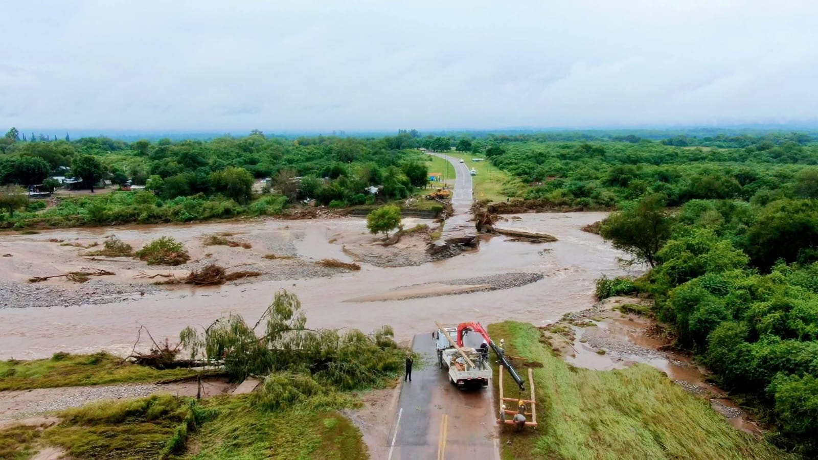 El intendente Raul Barot recorrió la zona de la alcantarilla del Río Manantiales, donde las intensas precipitaciones que superaron los 140 mm provocaron el corte total de la Ruta Provincial Nº 21.